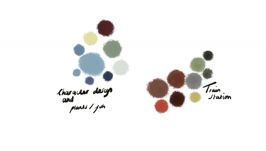I began comprehending colour theory, playing with my backgrounds, and trying to assess where I wanted the darkest areas to be found and what emotions I wanted to evoke through each tone. I found this exciting and fun because there were so many possibilities and choices. Through my animatic, I knew I wanted the background design to be an underground tube.