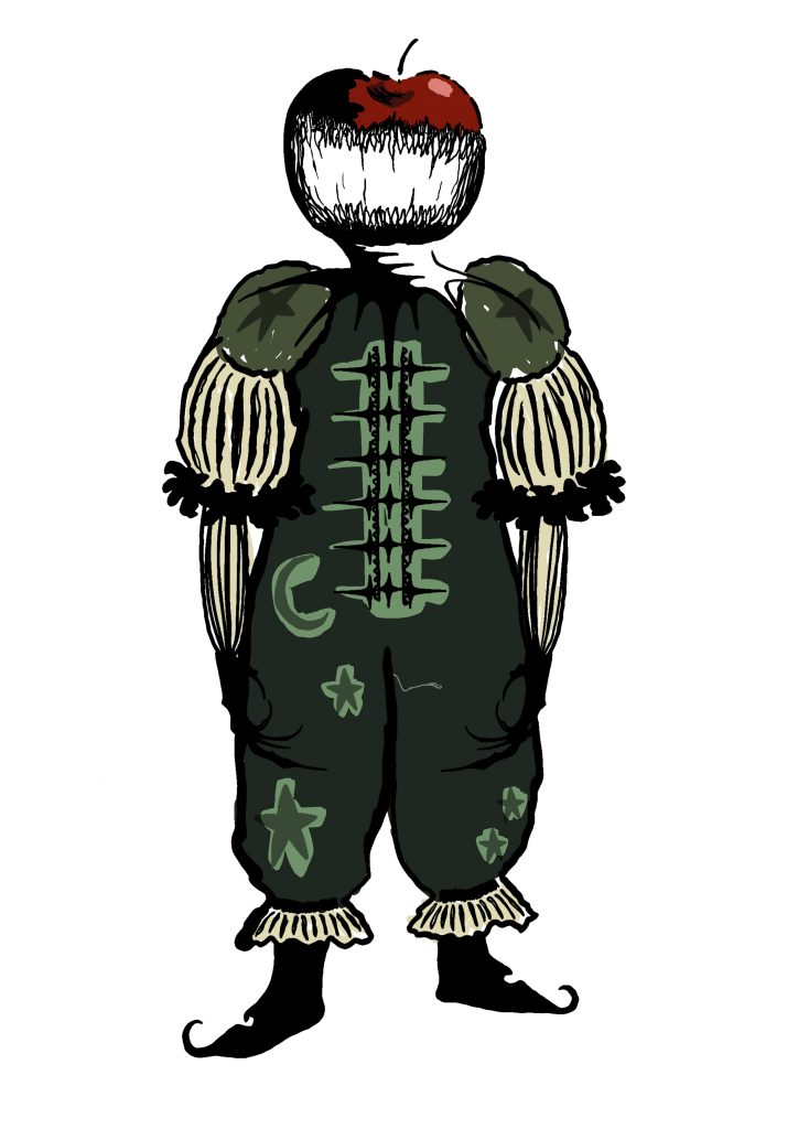 I began sketching apple characters, using this as my tool to represent Cotards Syndrome.
