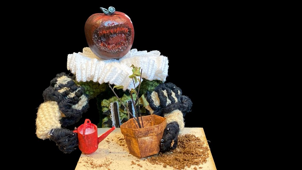 My colour choices were decided by the mix of both red and green apples. I knew I wanted to crochet the outfit and as such, I used my wool to choose the value of each colour. The shoes and outfit were inspired by fairy tales and the whimsical aesthetics in each storybook, artwork and movie. Each choice was carefully made by watching a series of movies and reading a number of children’s books.
